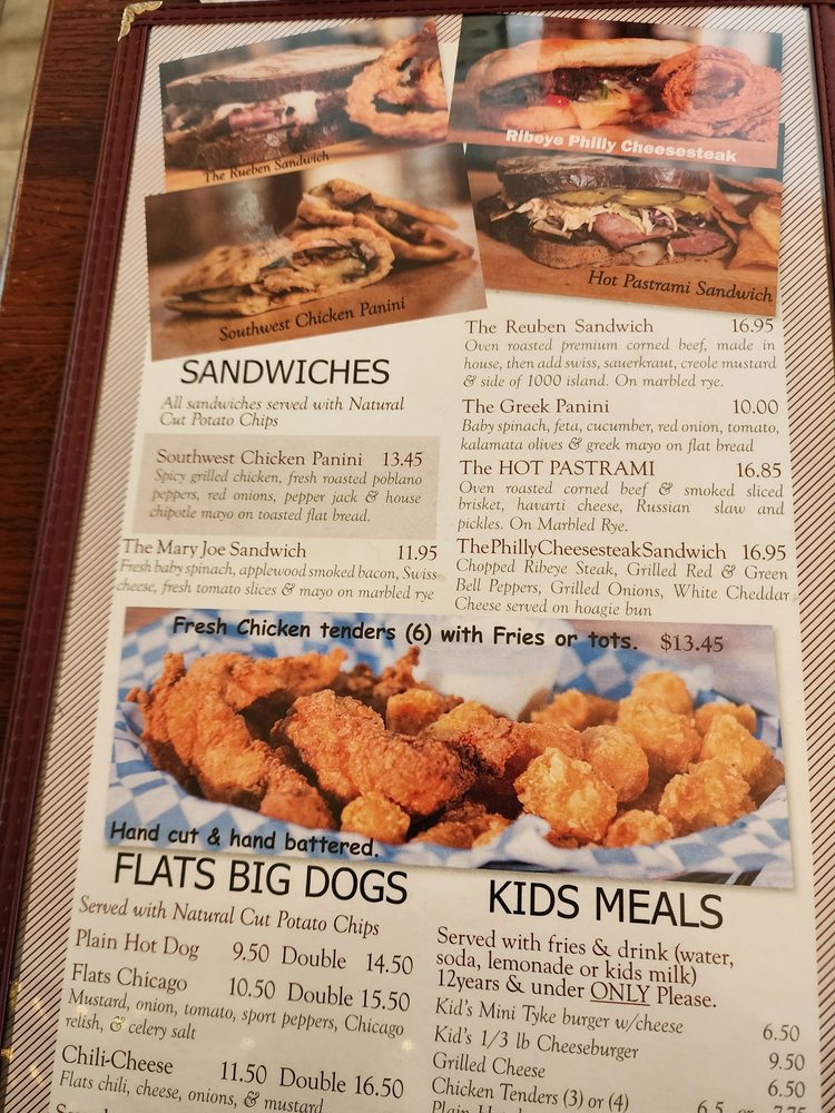 Tortilla chips covered with Beef or Chicken, refried beans, fresh guacamole, sour cream, jalapeos, tomatoes & Flats Queso